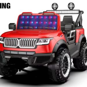 Realistic Car Design: Electric Car gives your kids a realistic driving experience just like a real vehicle with a horn, led Headlights, music, USB, Aux, and remote controller. You can connect a USB port or Aux and play a wider selection of songs and stories. 🎁Birthday Gift / Presents For Boys & Girls – This…