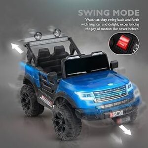 This kids’ electric car offers two exciting ways to drive. Parents can take control using the 2.4G wireless remote or let kids take the wheel and drive on their own. This feature encourages hand-eye-foot coordination, allowing young drivers to build confidence while enjoying a safe and fun driving experience in their jeep. [Realistic Driving with…