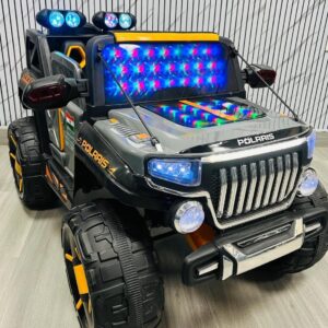 This interactive experience promotes hand-eye-foot coordination, enhances courage, and builds confidence as they manage the accelerator, steering wheel, and forward/backward moving modes independently. kids children battery jeep With a realistic design, this baby battery-operated jeep provides an authentic driving experience. Equipped with a horn, LED headlights, RGB windshield light, inbuilt music, Bluetooth, USB, Aux, and…