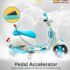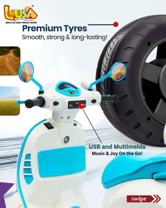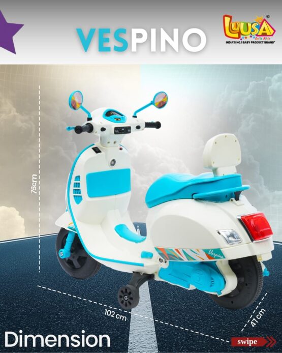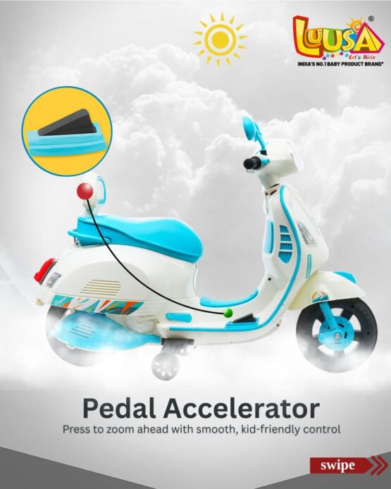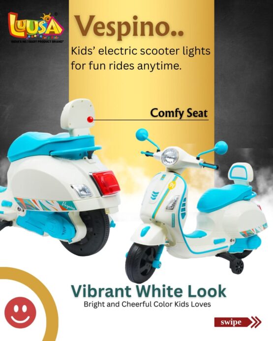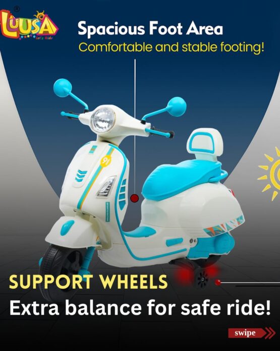 designed for utmost comfort of the baby with optimum height and round edges so as not to cause any injury to the kid the scooter is constructed by entirly safe material which feature non toxic and odorless it is secure for your baby to ride on freely steering wheel lets your little once try controlling the direction of turning left right going forword backword by steering wheel control the working sounds and lights by the buttons there as well it has a spacious seat it is convenient to carry where ever you go . A smooth and perfect swings scooter for you toddlers.